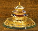 Art Glass Artisan Paperweight Lead Crystal Temple of Heaven Brass Filigree Trim