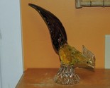 - Art Glass Quail / Bird Purple Yellow gold 8.5" bulicante unmarked Italian Murano