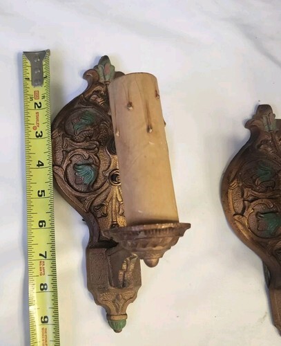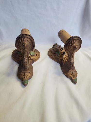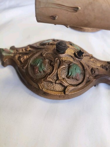 Art Nouveau Pair Wall Sconce Light Fixtures Cast Iron Polychrome Read*
