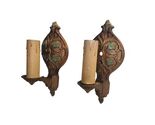 Art Nouveau Pair Wall Sconce Light Fixtures Cast Iron Polychrome
