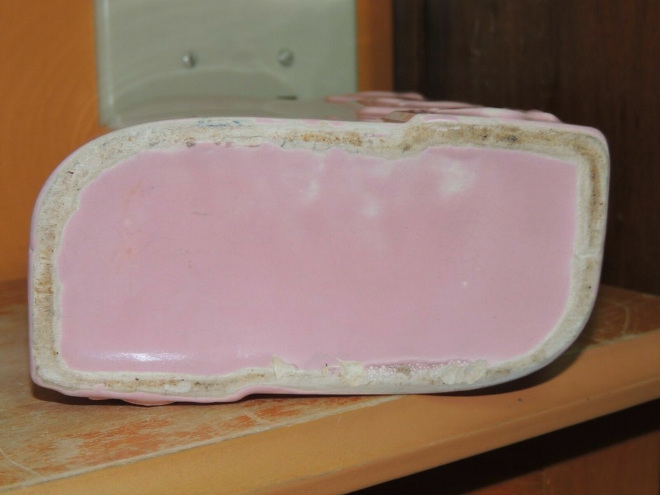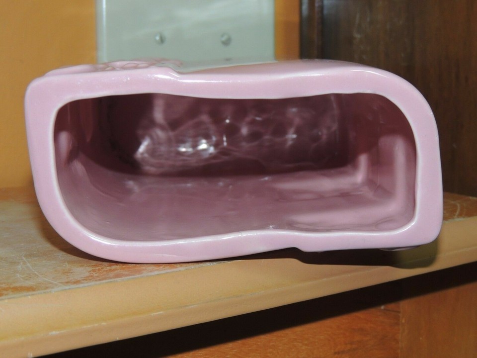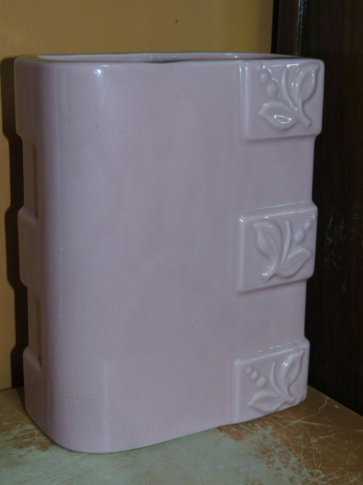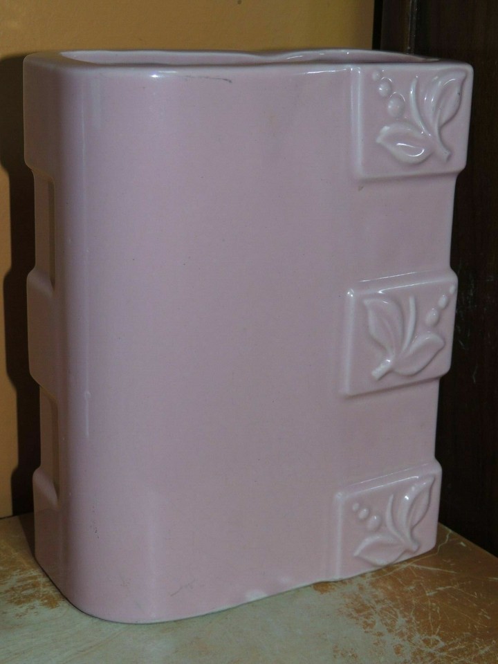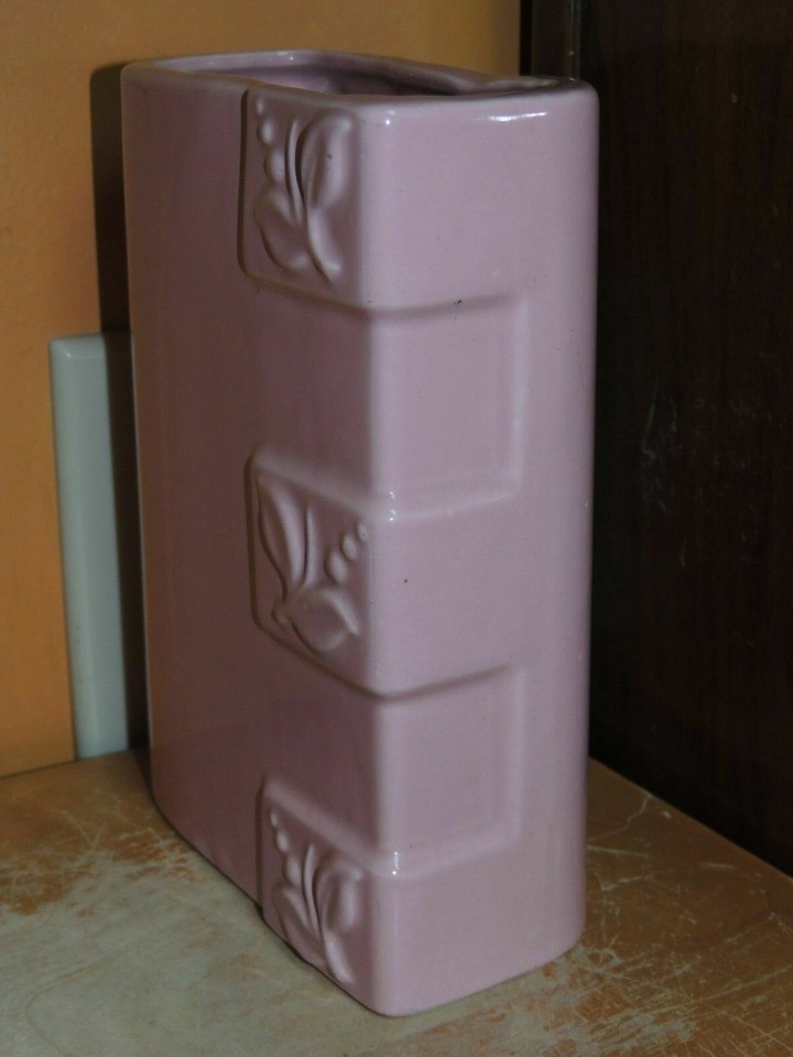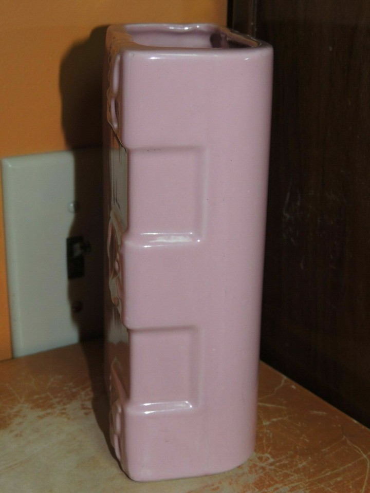 - Art Pottery 7"+ Vase Mid Century pink rectangular floral american unmarked