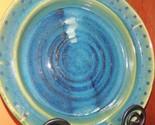 - Art Pottery Bowl 13"x2.25" green blue bubble drip glaze Vintage style stoneware