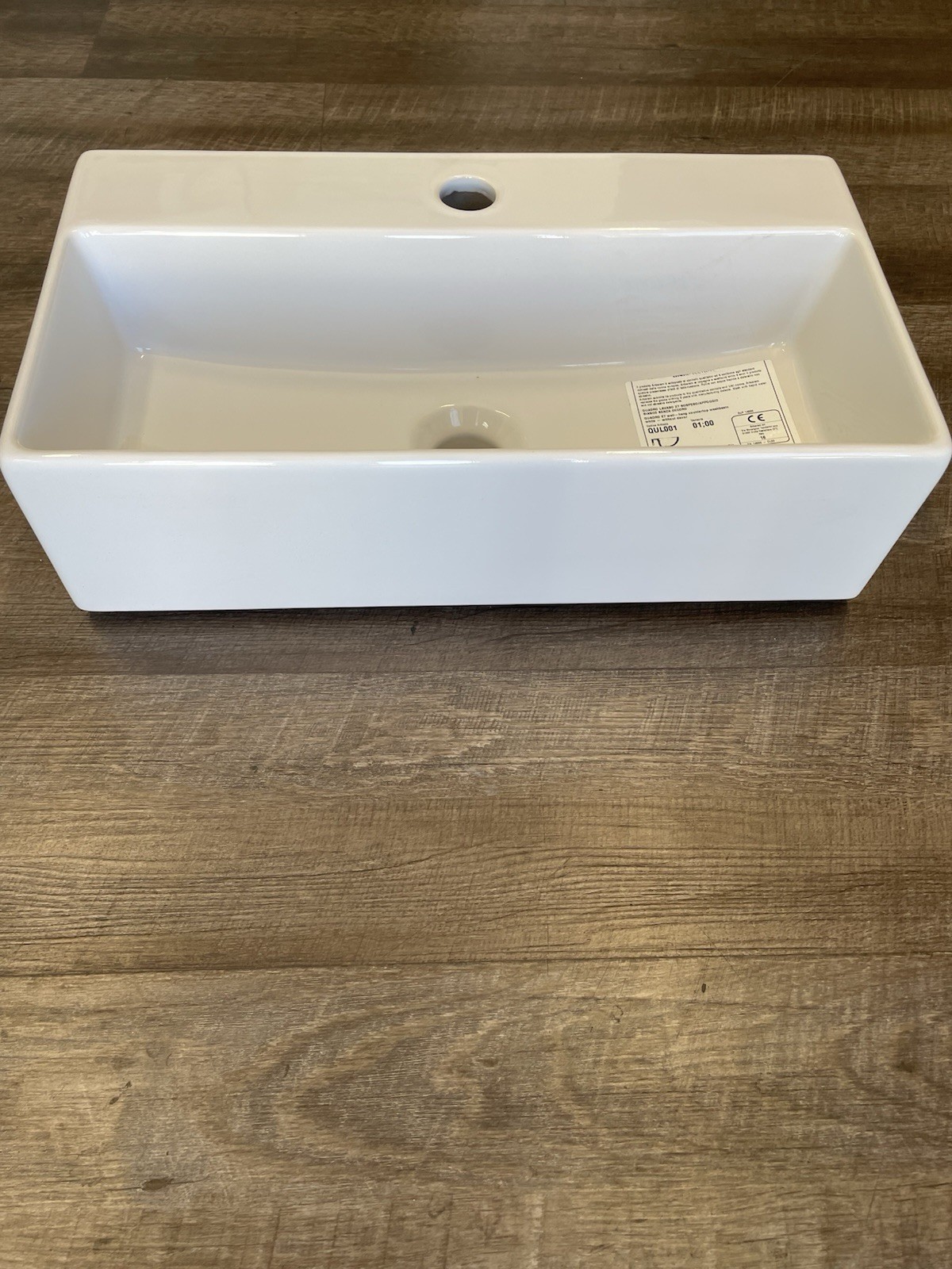 Wall or countertop sink in polished white ceramic