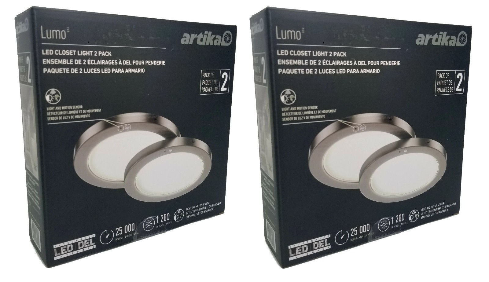 - Artika Lumo 2 Pack 8" LED Closet Light with Motion Sensor, Brushed Nickel 4 Pc