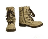 Ash Beige Leather Studded Straps Low Heel Zipper Ankle Boot Booties Shoes 40