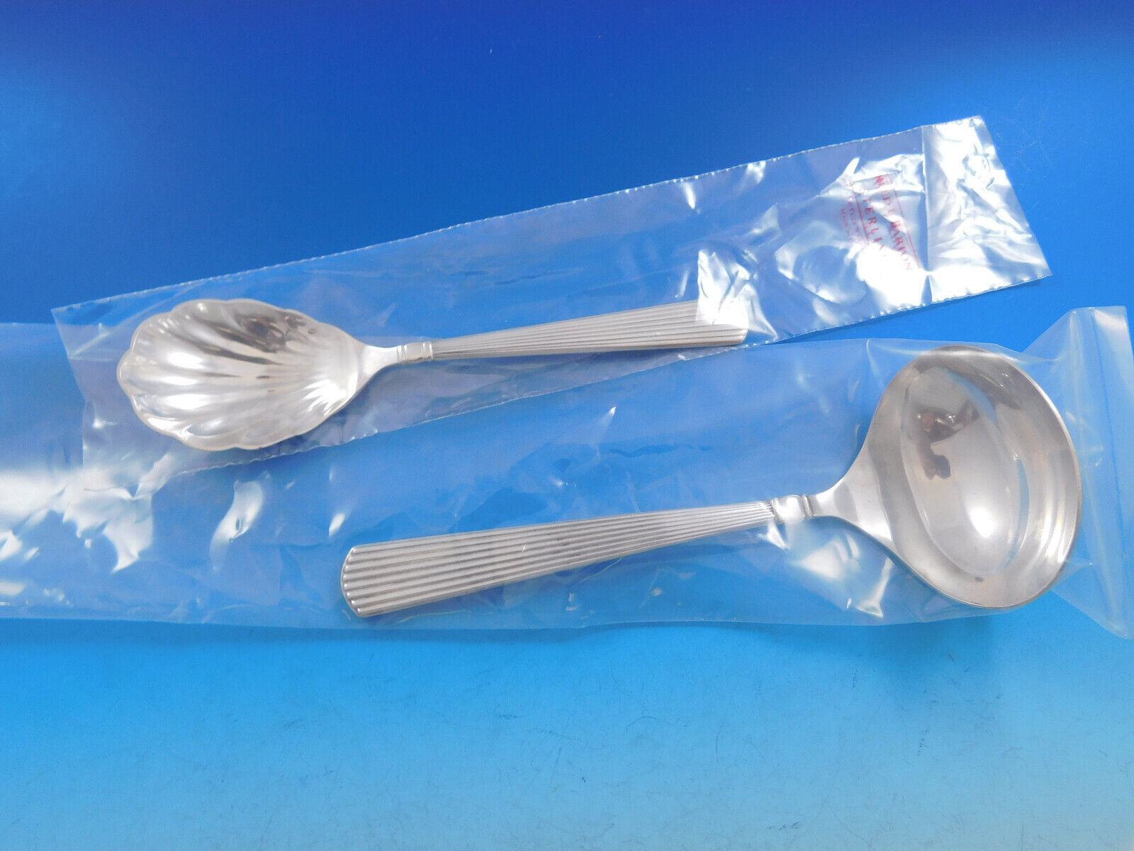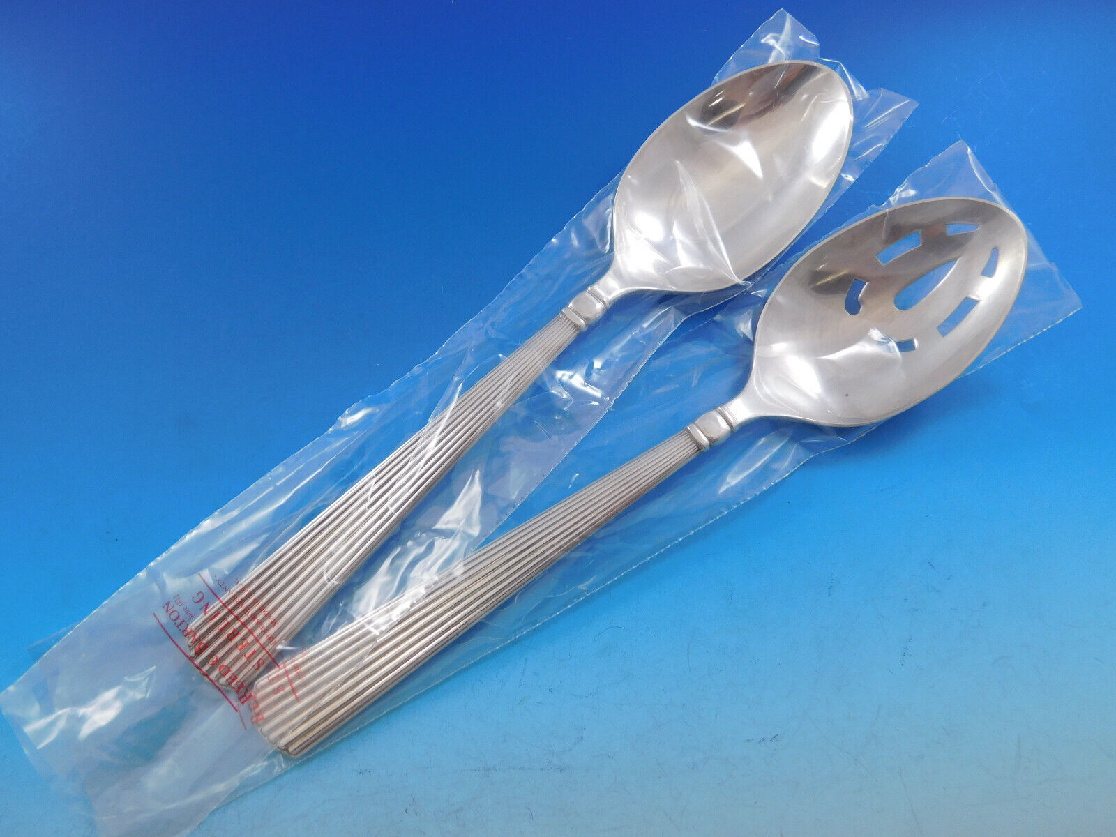 sleek and heavy sterling silver flatware pattern with elegant linear fluting,