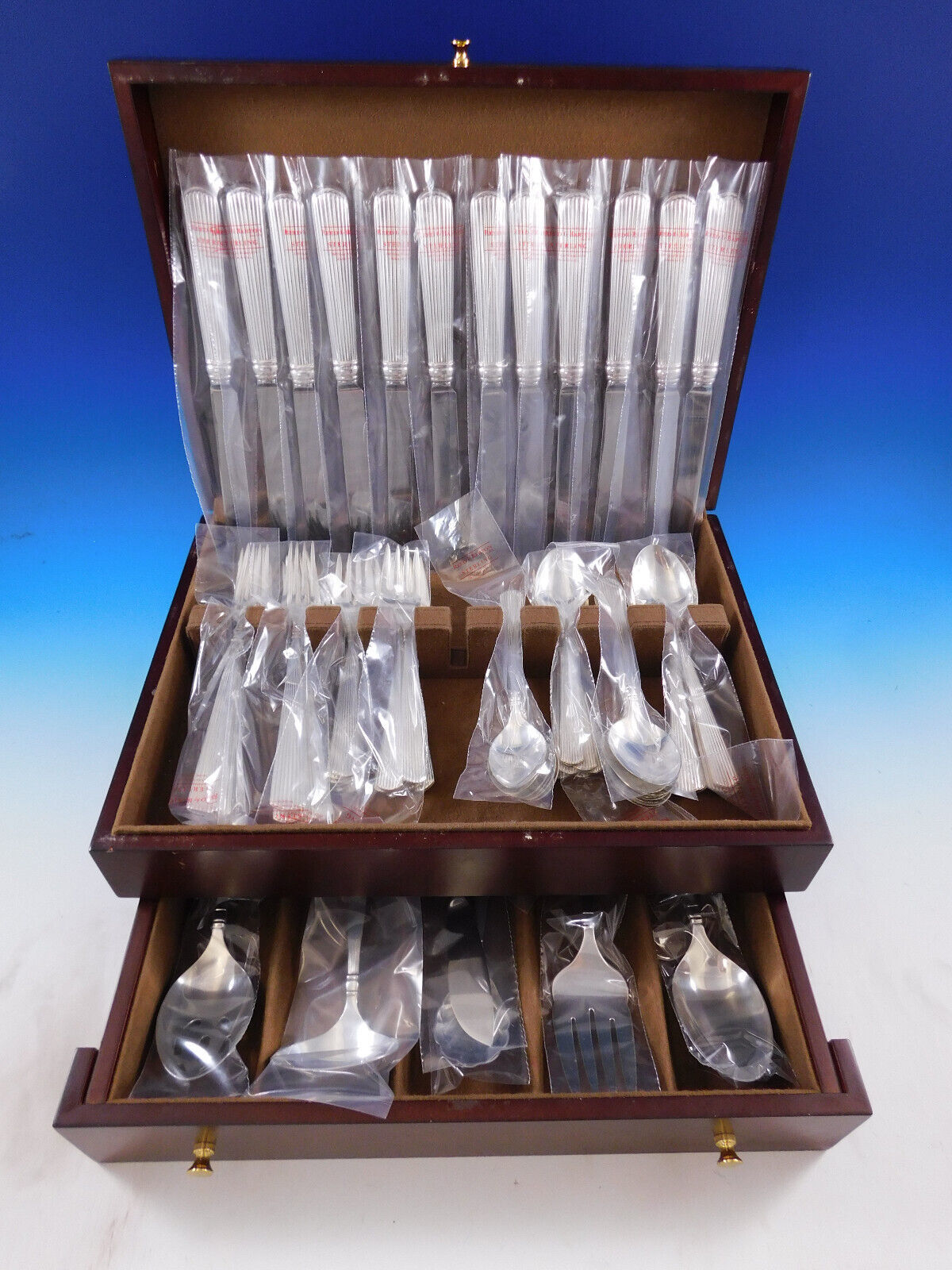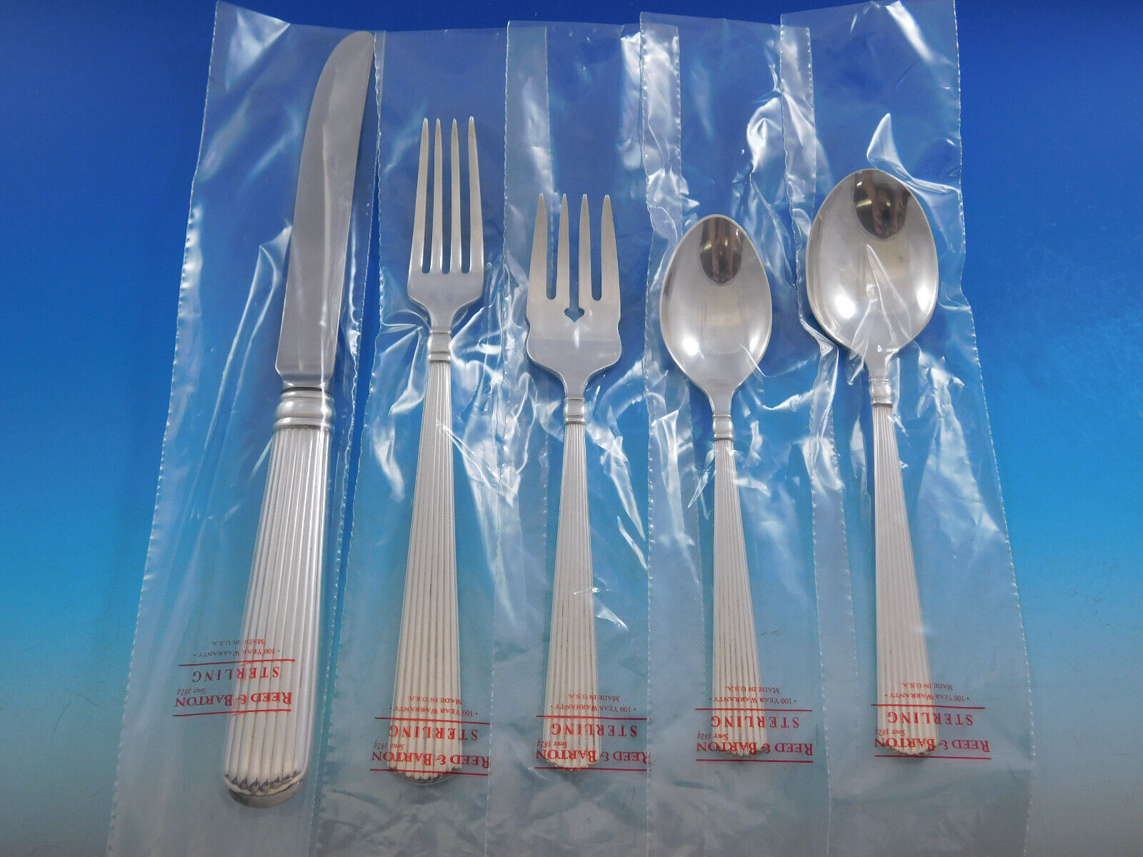 Unused Dinner Size Ashmont by Reed Barton sterling silver Flatware set, 66 pieces. This set includes:
