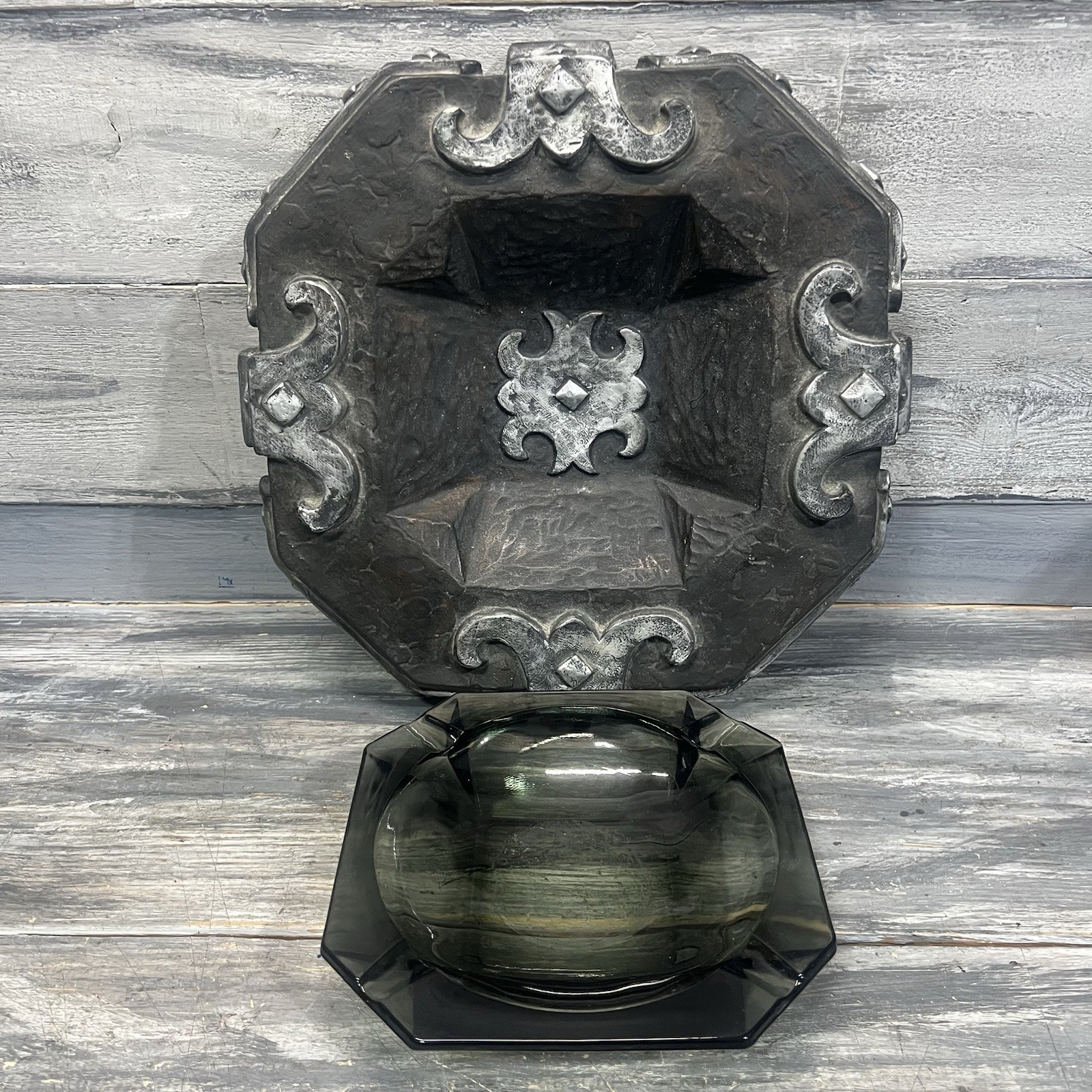 - Ashtray Large Gothic Plaster Dark Medieval Glass 12” X 12” MCM Cigar Cigarette