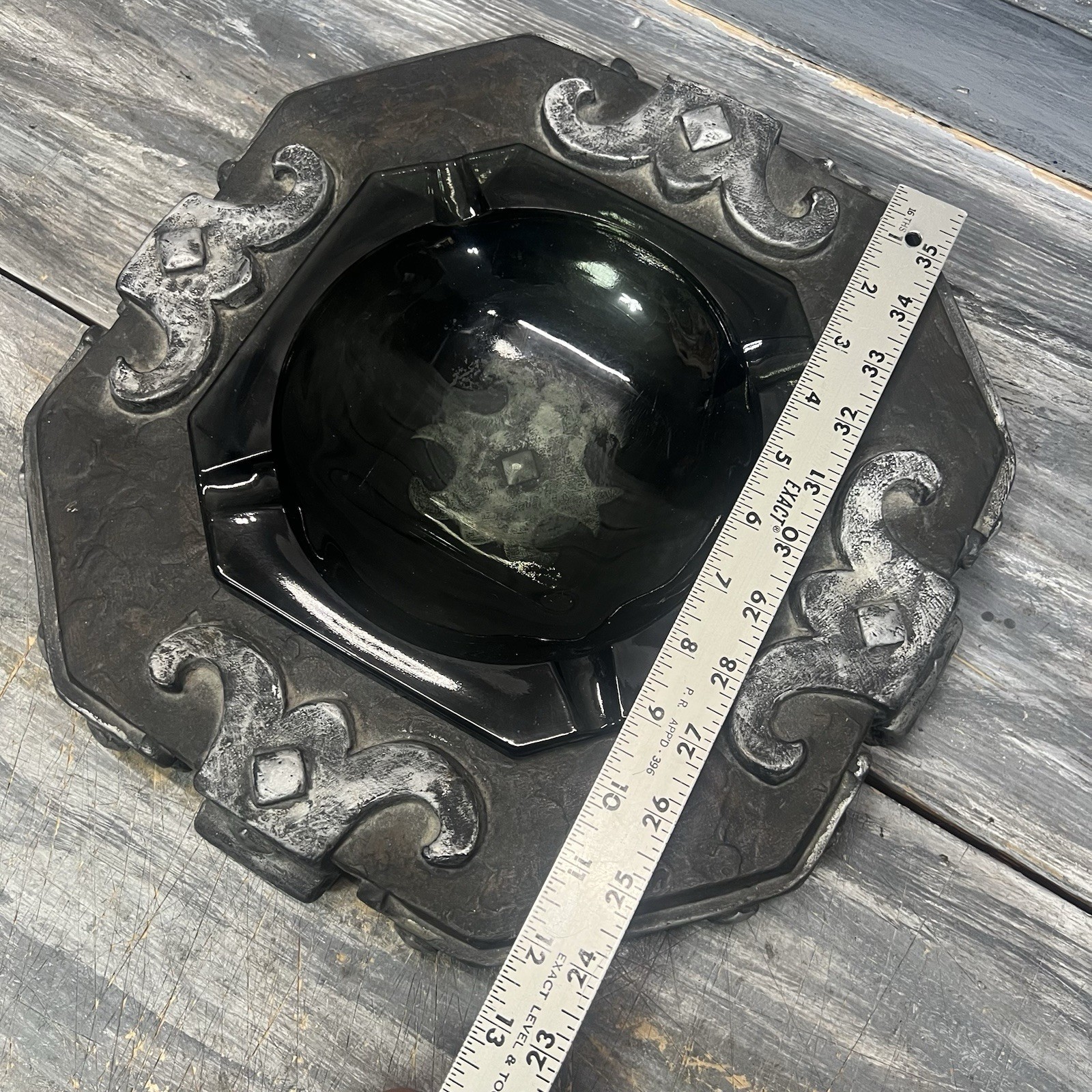 Ashtray Large Gothic Plaster Dark Medieval Glass 12” X 12” MCM Cigar Cigarette