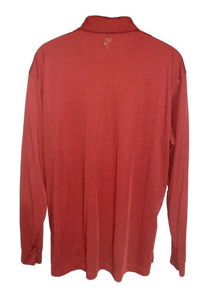 Ashworth Golf Shirt Men L Burnt Orange Long Sleeve Polo Preppy Pinehurst Logo