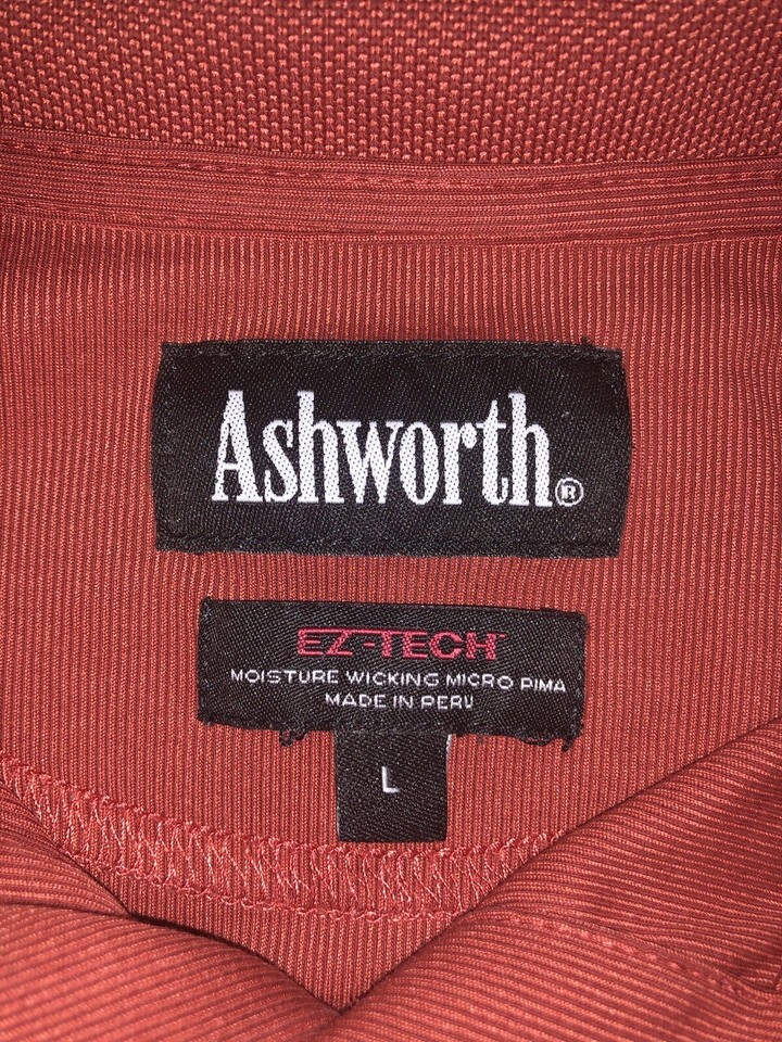 - Ashworth Golf Shirt Men L Burnt Orange Long Sleeve Polo Preppy Pinehurst Logo