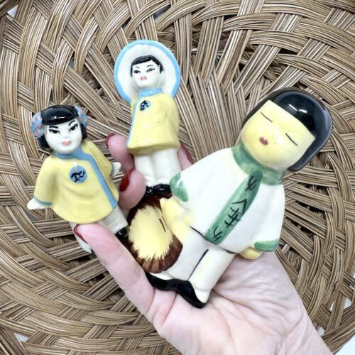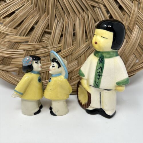 - Asian Couple Salt Pepper Shakers & Chinese Girl Figurine Lot Ceramic VTG 1950s
