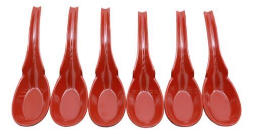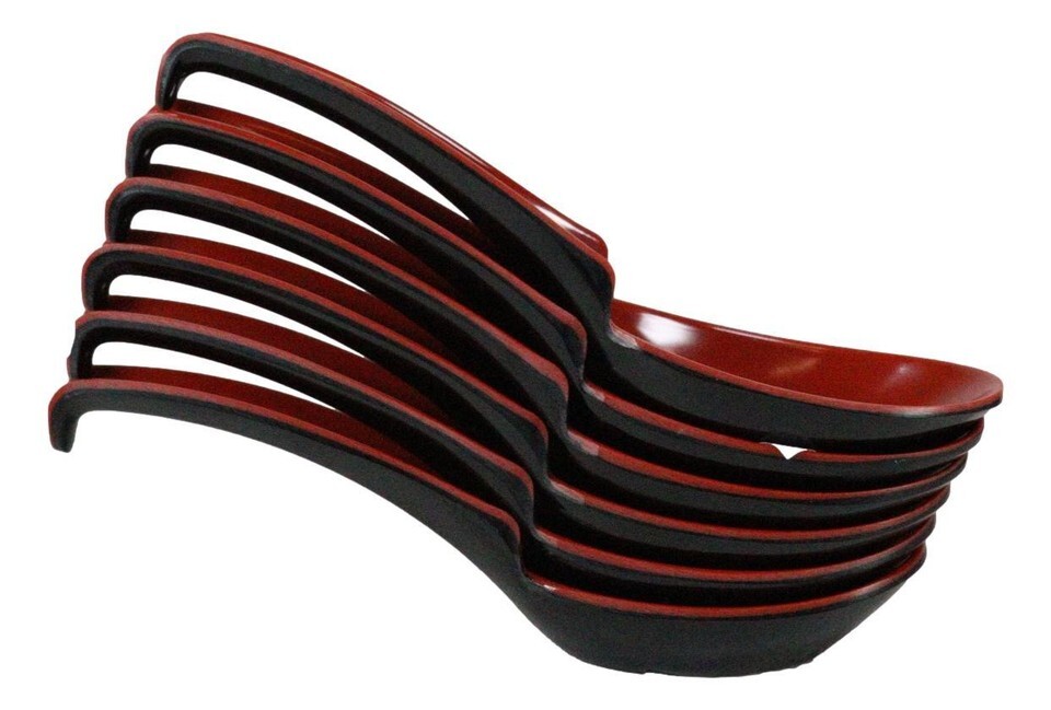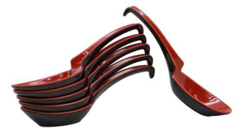 - Asian Red Black Melamine Ladle Style Spoons Pack Of 6 Set With Notch And Hook