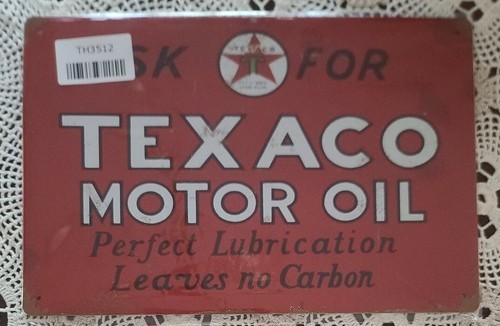 ASK FOR TEXACO MOTOR OIL ~ Distressed ~ Landscape Metal Sign ~ 8" x 11.75"