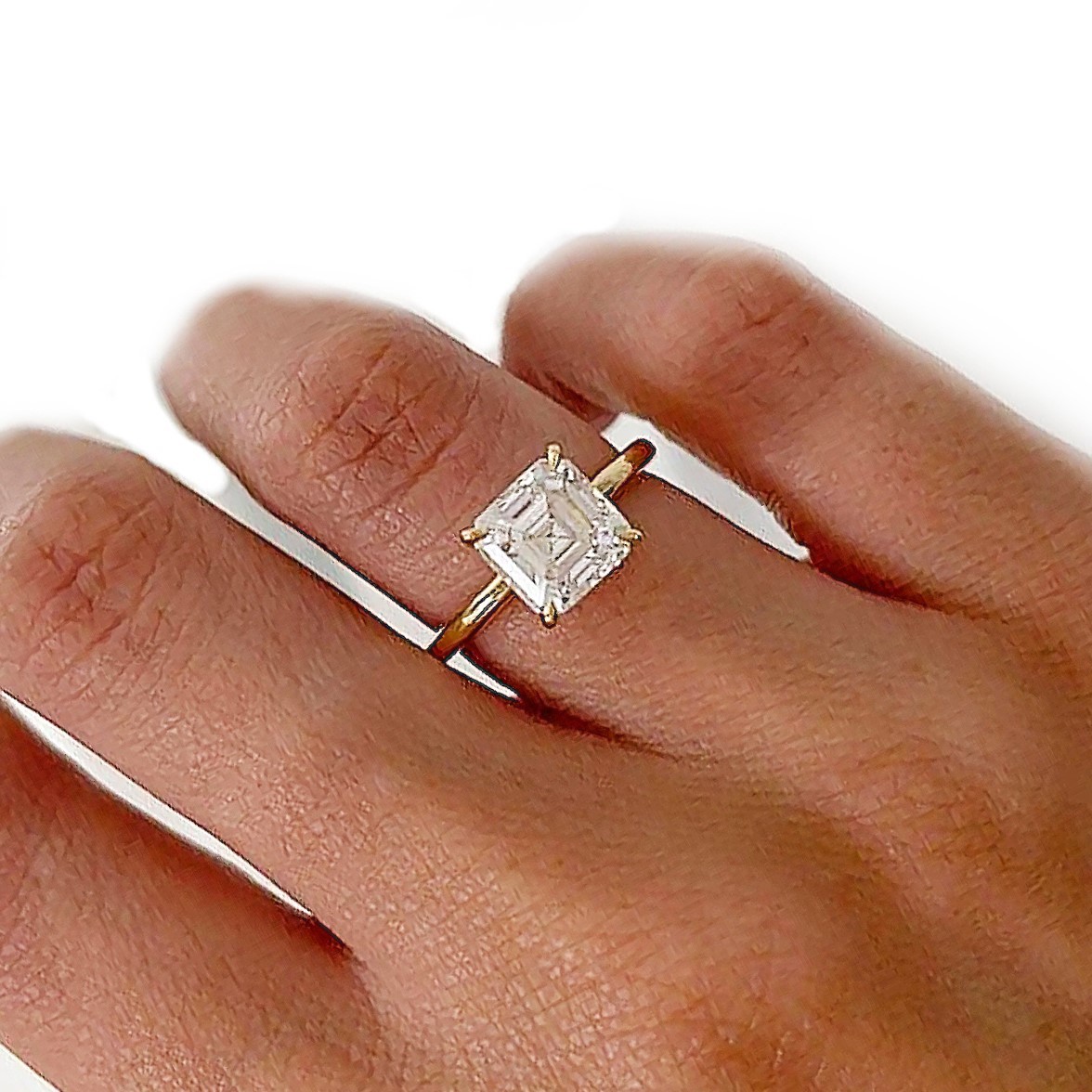 - Asscher diamond engagement ring, lab diamond engagement ring, Solitaire ring
