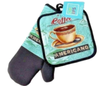 - Atelier Coffee Americano Kitchen Oven Mitt Potholder Black Silicone Grip Blue