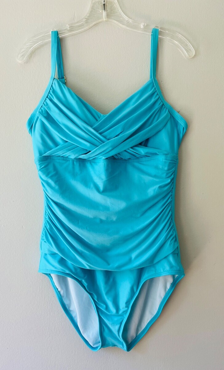 - Athena Sz 12 One Piece Turquoise Tummy Control Swimsuit Shoulder Strap