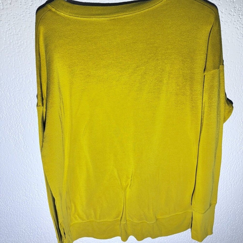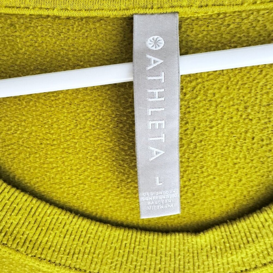 Description: Brighten up your wardrobe with this bold and cozy Athleta sweater in a vibrant mustard yellow. Designed with comfort in mind, this women's size large pullover features a relaxed fit, soft knit fabric, ribbed crew neckline, and subtle side slits for added movement. Perfect for layering or wearing solo on breezy days. A stylish yet functional piece for your everyday active or casual wear.