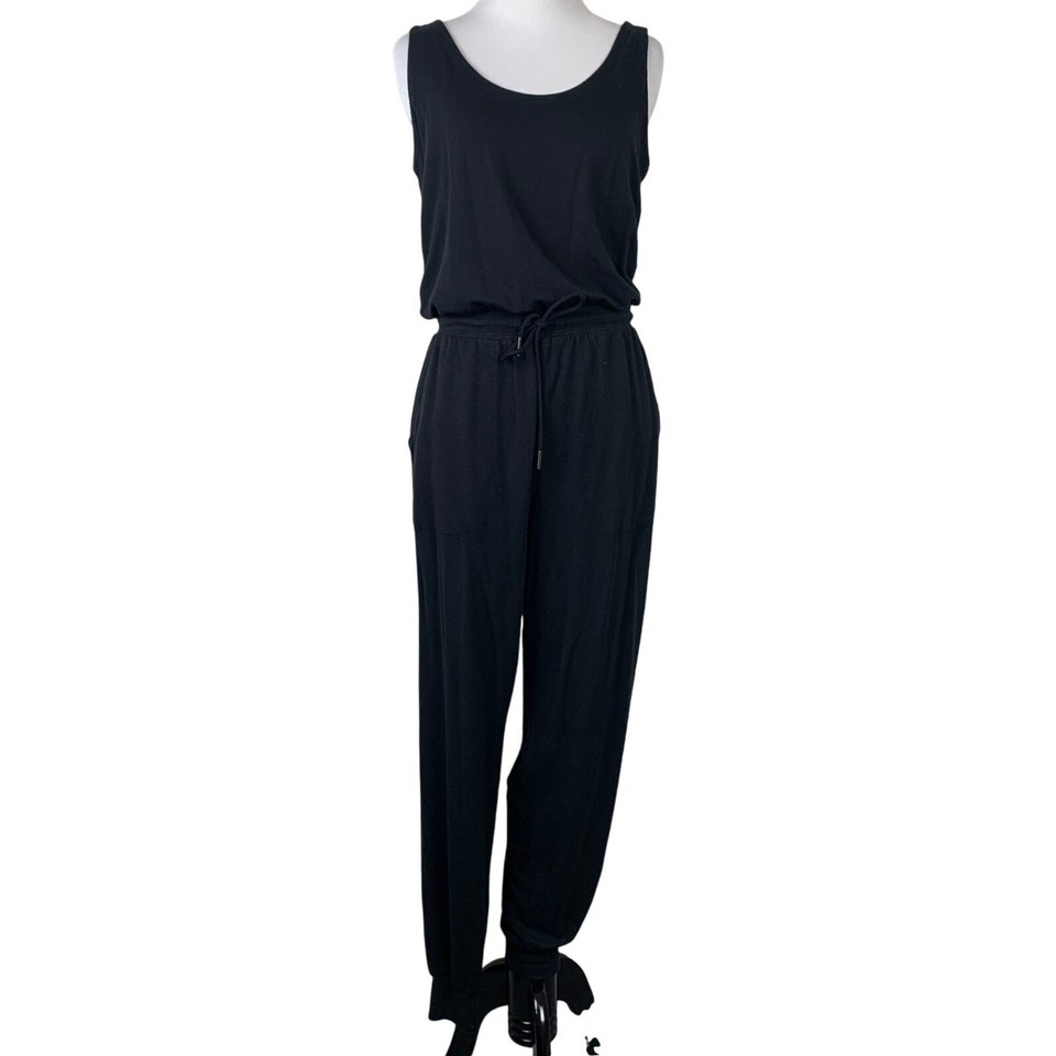 - Athleta Womens Black Balance Jumpsuit Size S drawstring waist pockets scoop neck