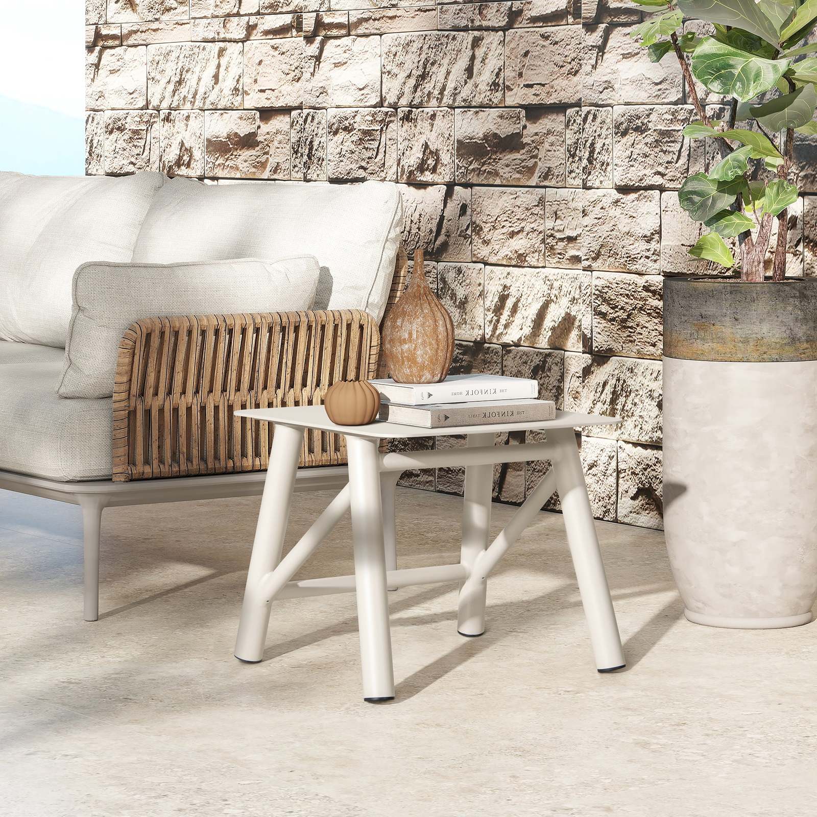 - Atlas 19.5" Square Outdoor Side Table Beige Gray Aluminum