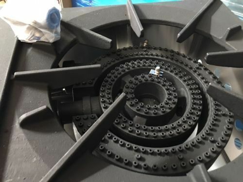 ? Heavy, cast iron three-ring burner, rated at a