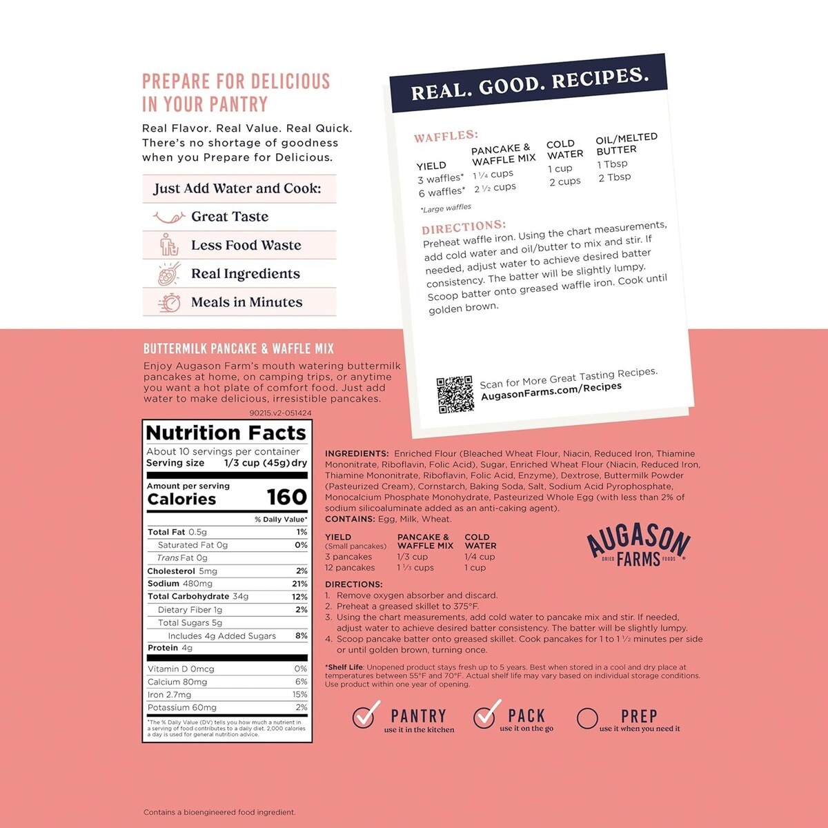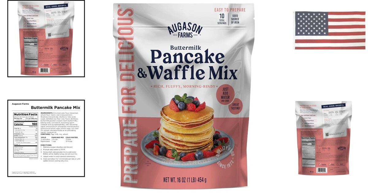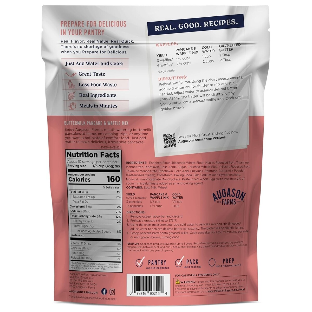 - Augason Farms Buttermilk Pancake & Waffle Mix, 16 oz Resealable Pouch, 10 Ser...