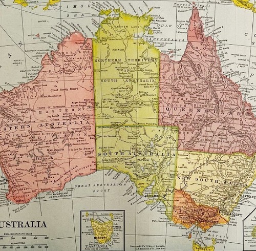 - Australia Map Lithograph 1909 Hammond Oceania Tasmania Print LGADMap