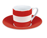 Two to three sips of espresso coffee is made even more enjoyable with our line of espresso cup and saucer sets. Made by Konitz in Germany, the contemporary design is highlighted by the flag of Austria and includes a matching saucer. Highly durable, these porcelain espresso cups are dishwasher and microwave safe. Saucer measures 4.5" in diameter. Mug stands 2.25" high and holds approximately 3 oz of espresso coffee.