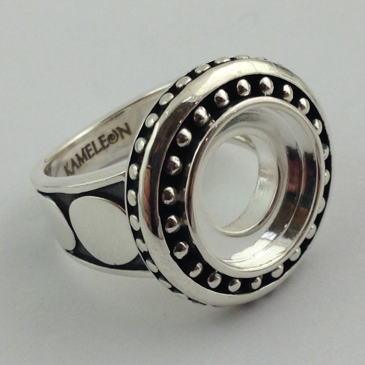 - Authentic Kameleon Sterling Silver Antiqued Round Ring Kr-28 Kr028 Size 5, New