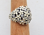 This authentic Pandora sterling silver ring features a charming daisy bouquet design with enamel details and sparkling CZ stones. The flower-shaped main stone in white/colorless adds a touch of beauty to the piece, while the sterling silver construction ensures durability and quality. With a ring size of 8.5 and a band width of 2mm, this dome-style ring is perfect for those who appreciate delicate and intricate jewelry pieces. The brand's signature makes it a sought-after item for collectors and jewelry enthusiasts alike.