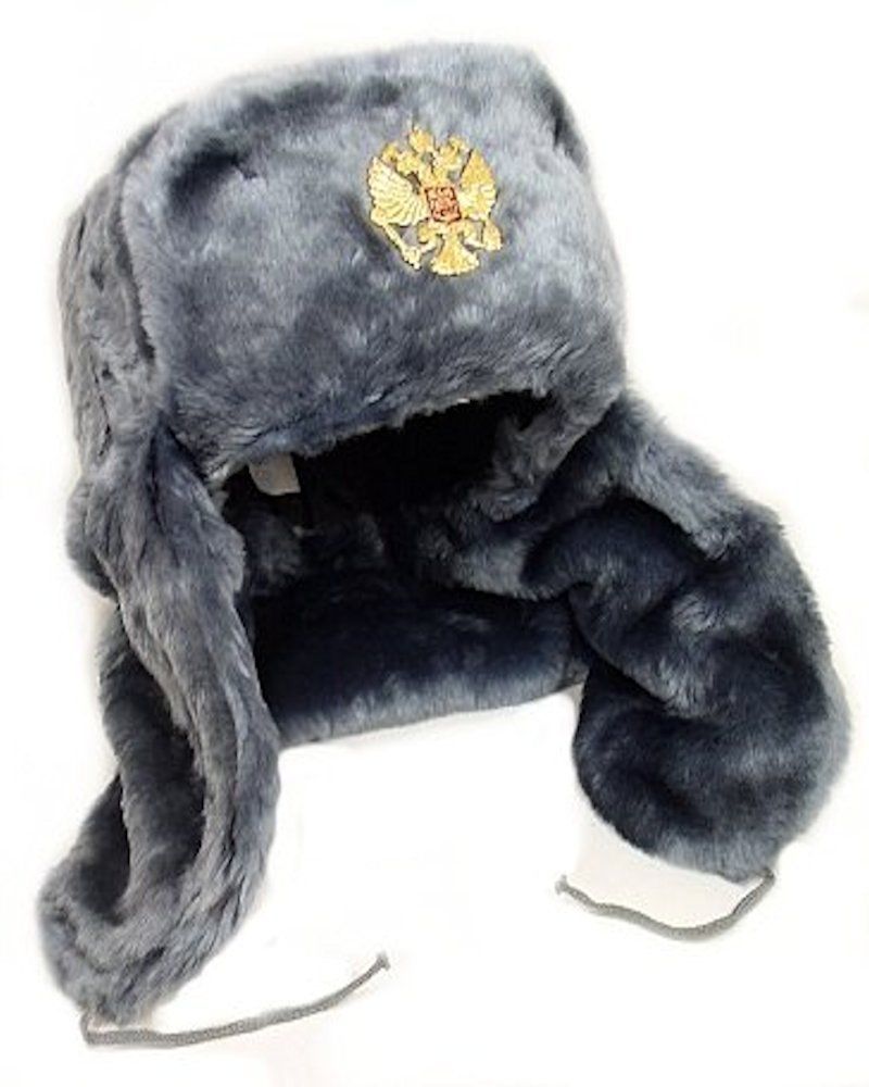 - Authentic Russian Gray Ushanka Military hat w/ SOVIET DOUBLE EAGLE BADGE