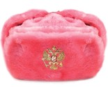- Authentic Russian Ushanka Pink Hat w/ Soviet Imperial Eagle Emblem