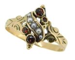 - Authenticity Guarantee 10k Yellow Gold Victorian Garnet and Seed Pearl Ring ...
