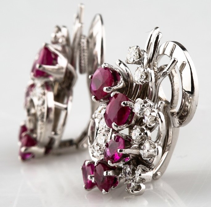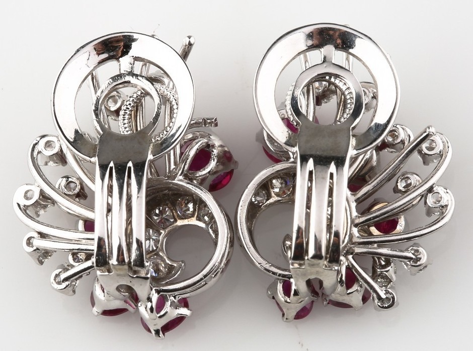 BEAUTIFUL 14K WHITE GOLD RUBY AND DIAMOND CLIP-ON EARRINGS