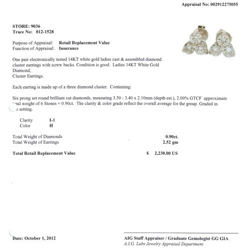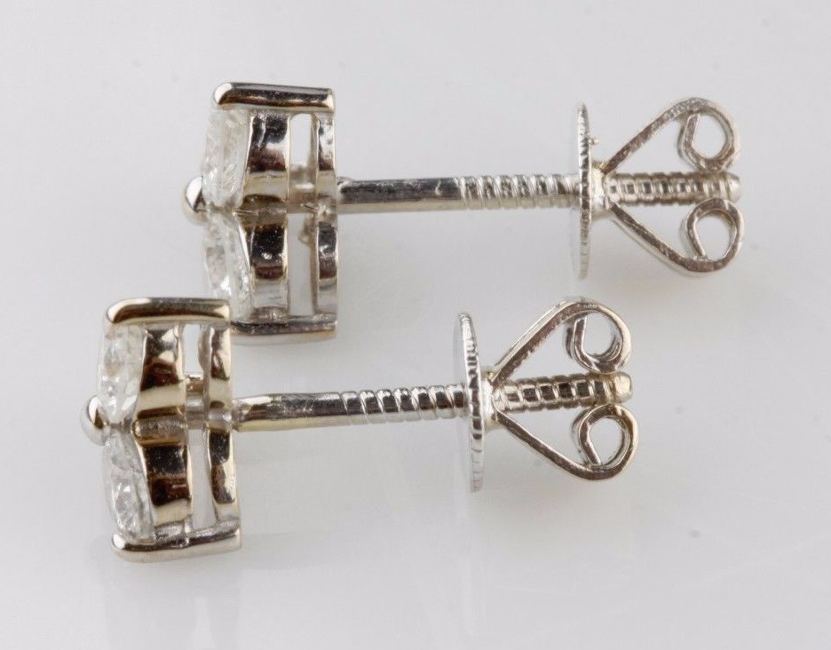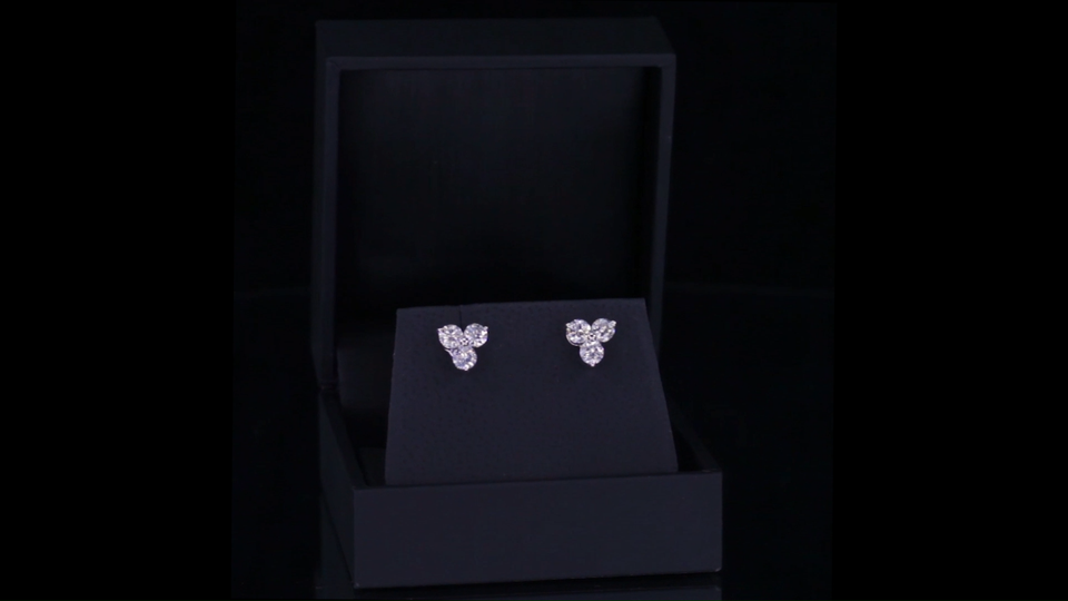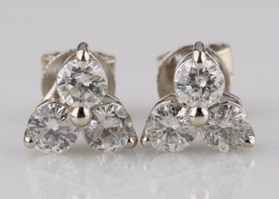 - Authenticity Guarantee 14k White Gold 0.90 carat Three Diamond Cluster Stud ...