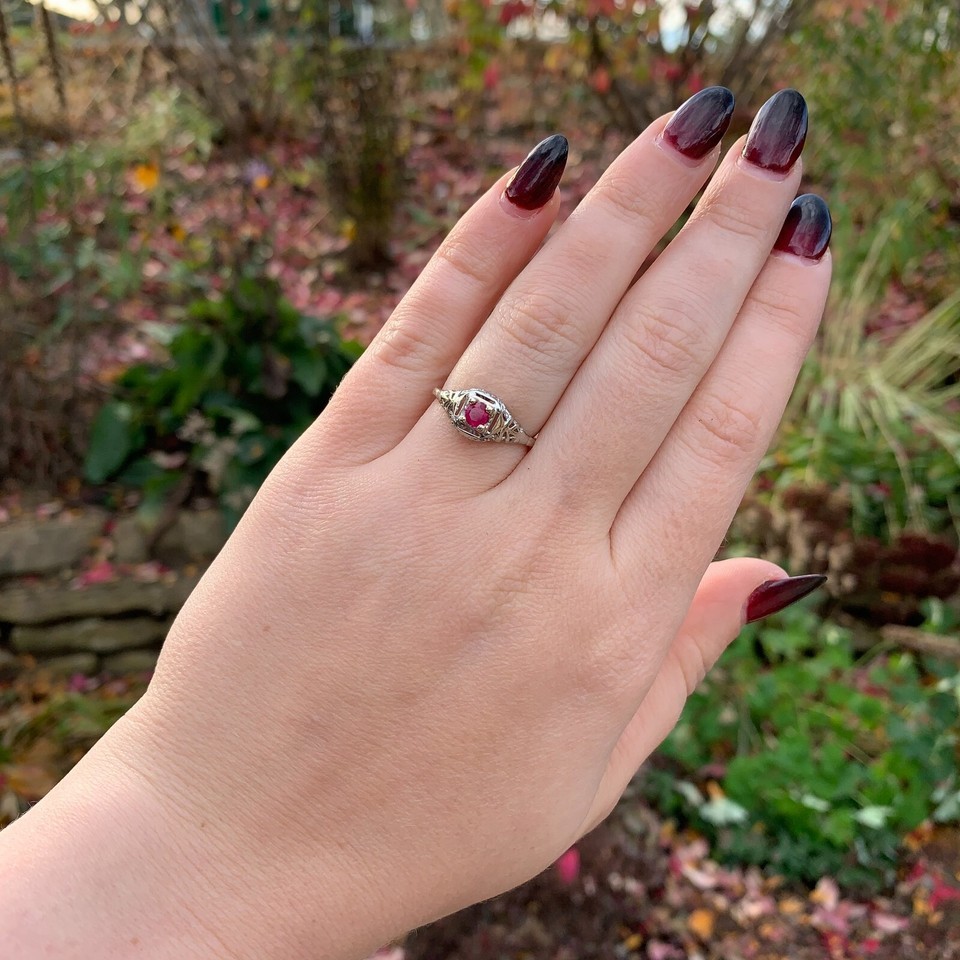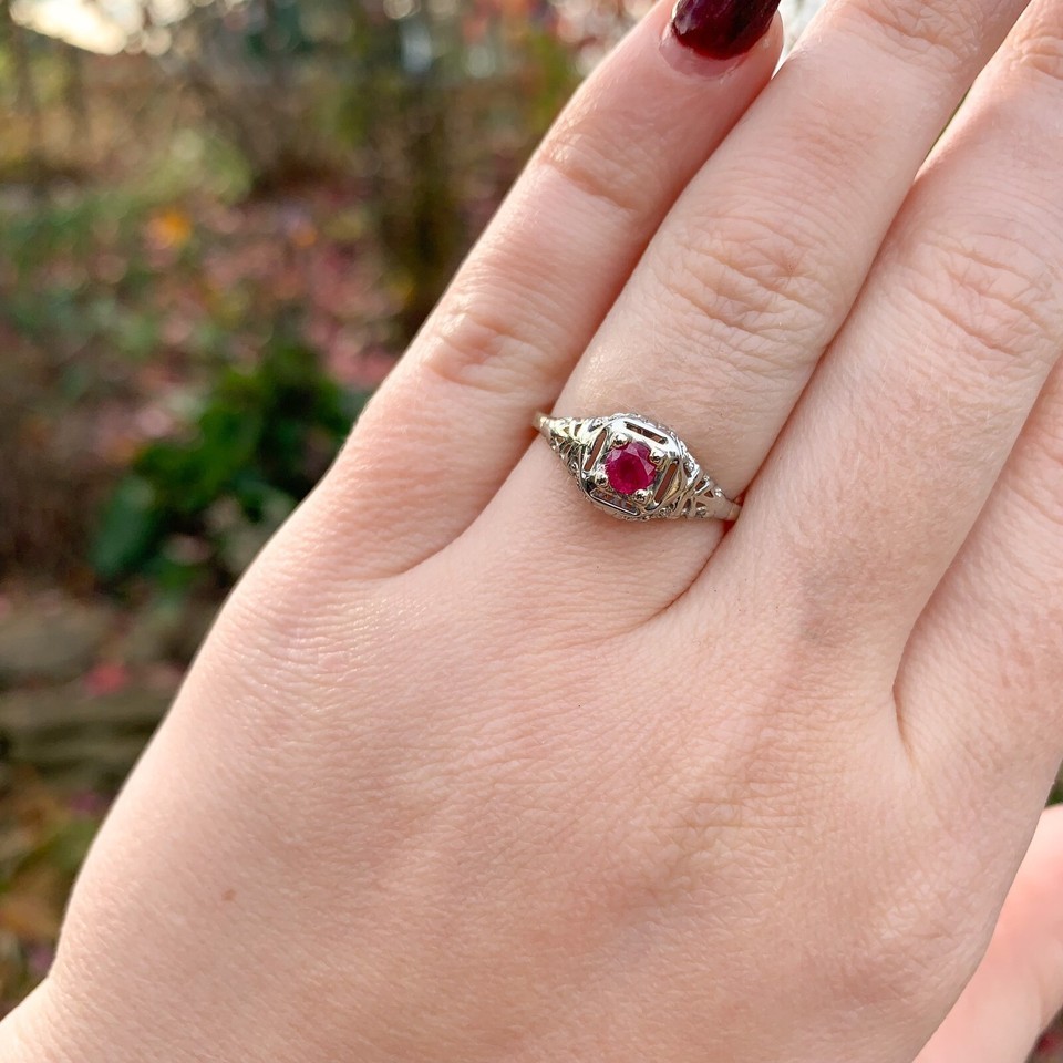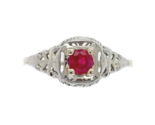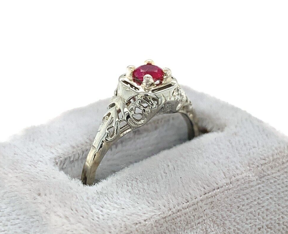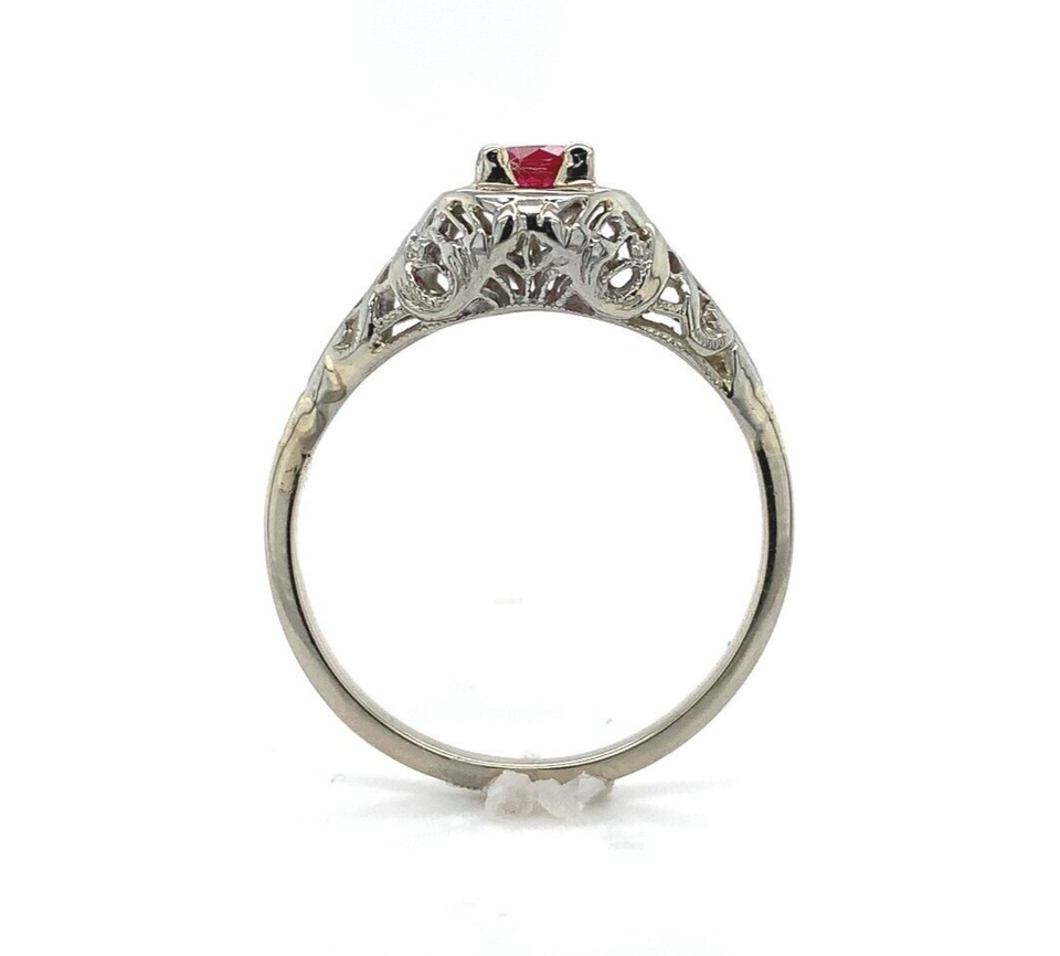 14k White Gold Art Deco .28ct Genuine Natural Ruby Filigree Ring (#J6334)