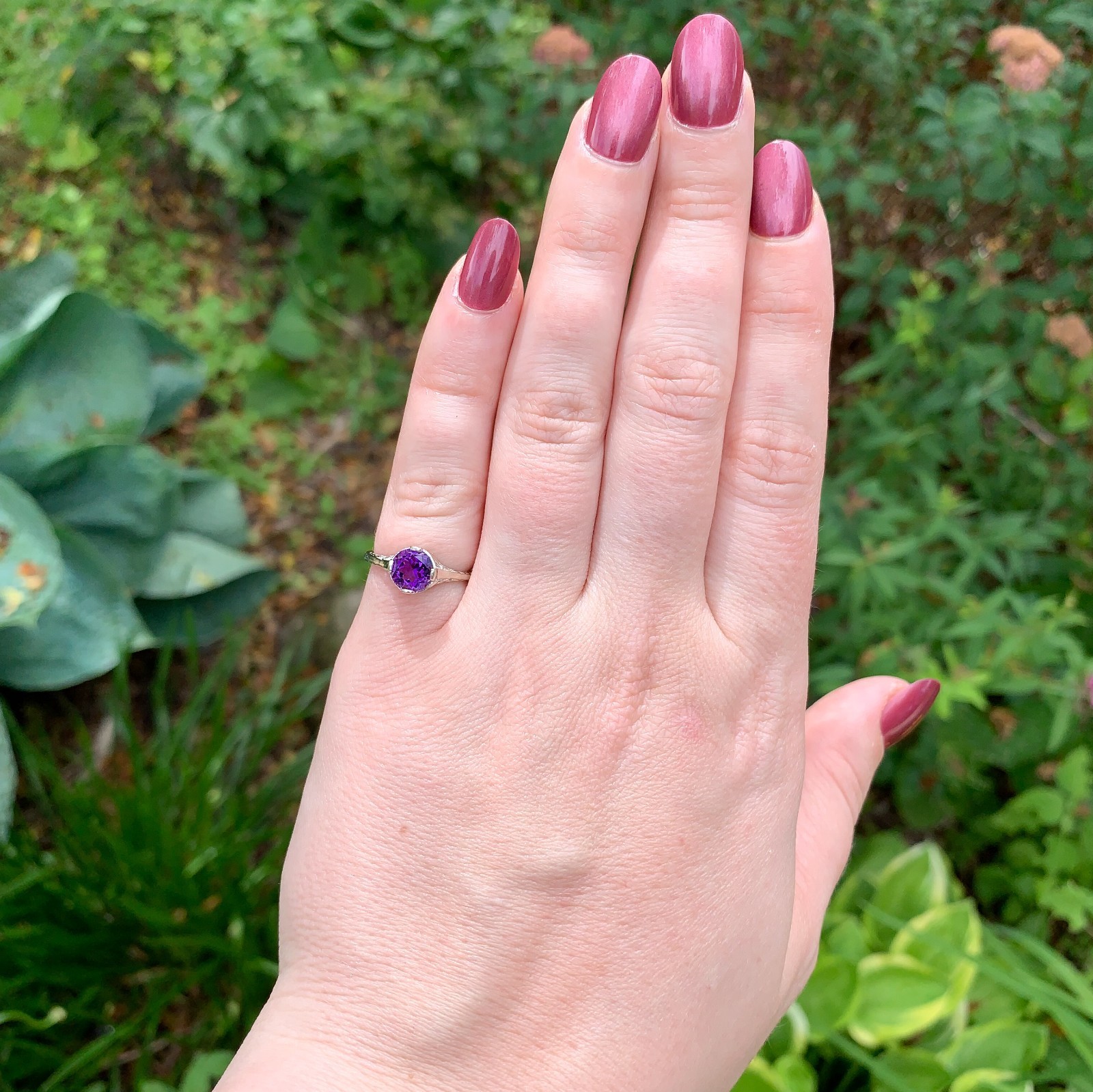 Authenticity Guarantee 14k White Gold Art Deco Filigree Genuine Natural Amet...