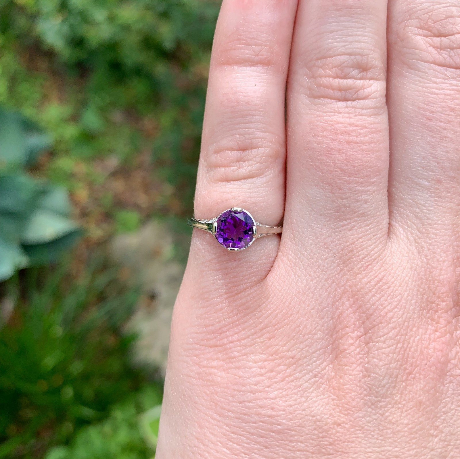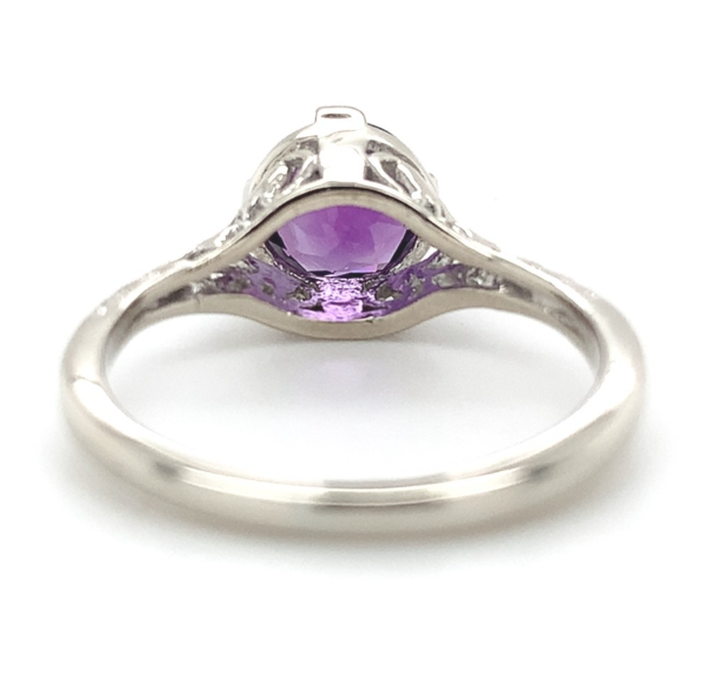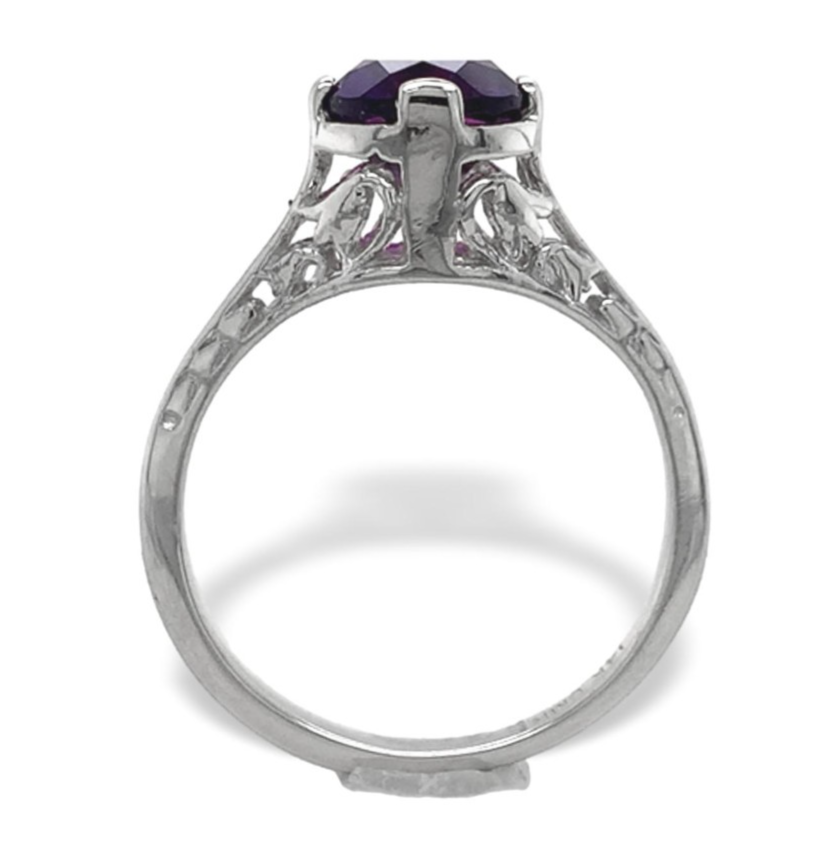 14k White Gold Art Deco Filigree Genuine Natural Amethyst Ring Size 4.5 (#J7468)