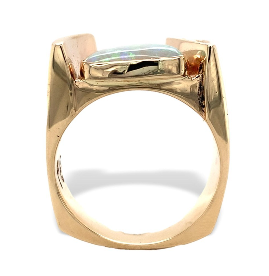 14k Yellow Gold Heavy Custom Australian Genuine Natural Opal Ring 9.5 (#J7314)