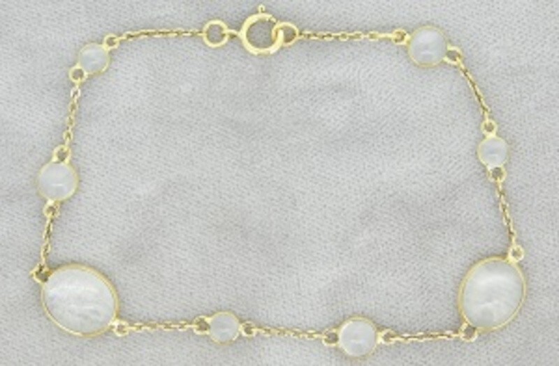 18k Yellow Gold 6.5ct Genuine Natural Moonstone Bracelet Jewelry (#J4560)