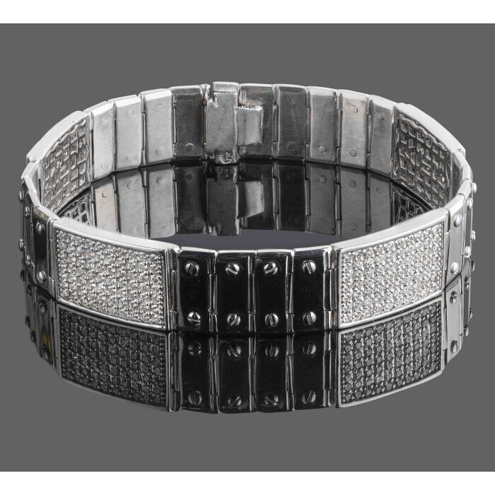- Authenticity Guarantee 4.25 Carat Men's 4 ID Screw Link Diamond Bracelet 14k...