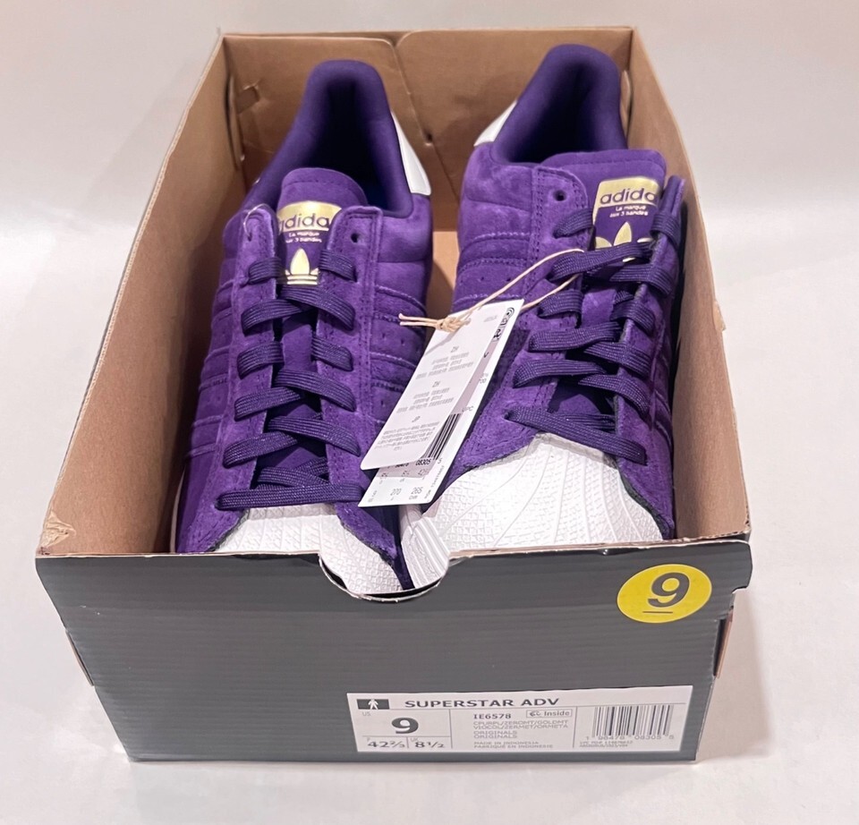 - Authenticity Guarantee Adidas Superstar ADV College Purple Gold Metallic IE6...