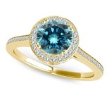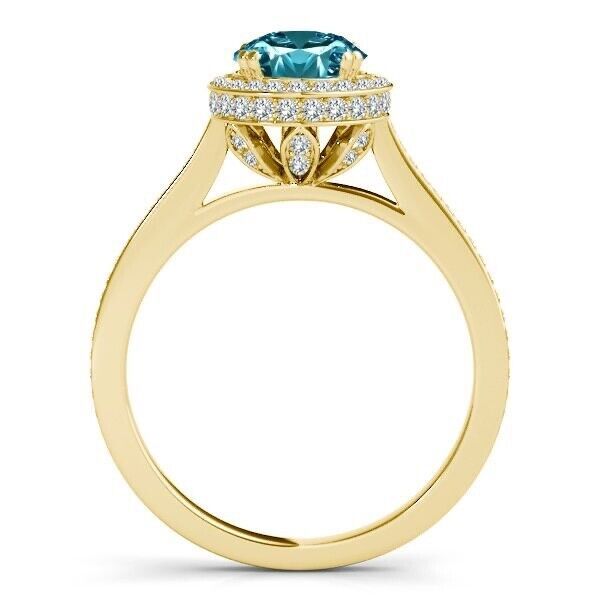 Authenticity Guarantee Blue Irradiated Round Diamond Halo Women's Ring 14K S...