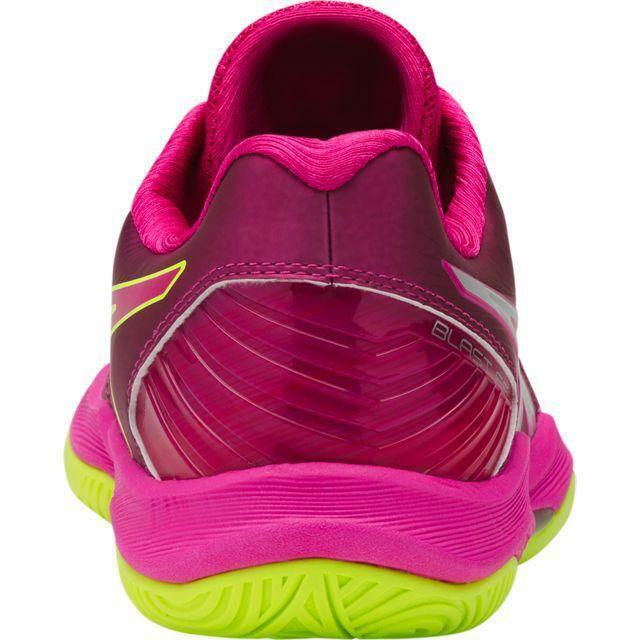 This is a great pair of brand new Asics Gel Blast FF indoor court shoes, for volleyball, squash, badminton, etc. Shiny fuchsia pink with bright yellow and silver trim. These have been tried on for about 2 minutes at which point it was clear they would be too big for me to play in, however the box was accidentally thrown out.