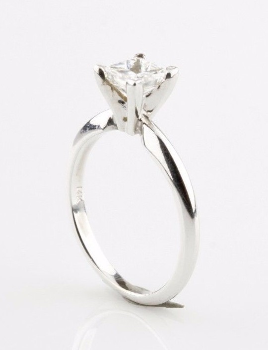 - Authenticity Guarantee Princess Cut Diamond Solitaire 14k White Gold Engagem...