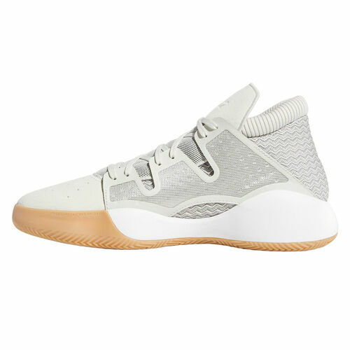 The adidas Pro Vision Men's Basketball Athletic Shoe in Size 10.5 features a beige and white color scheme with a mid-top shaft style. This vintage shoe from the adidas Athletics product line is designed for various athletic activities such as basketball, cross-training, and bodybuilding. Made with a combination of textile and synthetic materials, this sneaker is both stylish and durable, perfect for men looking for a colorful and 90s-inspired footwear option.
