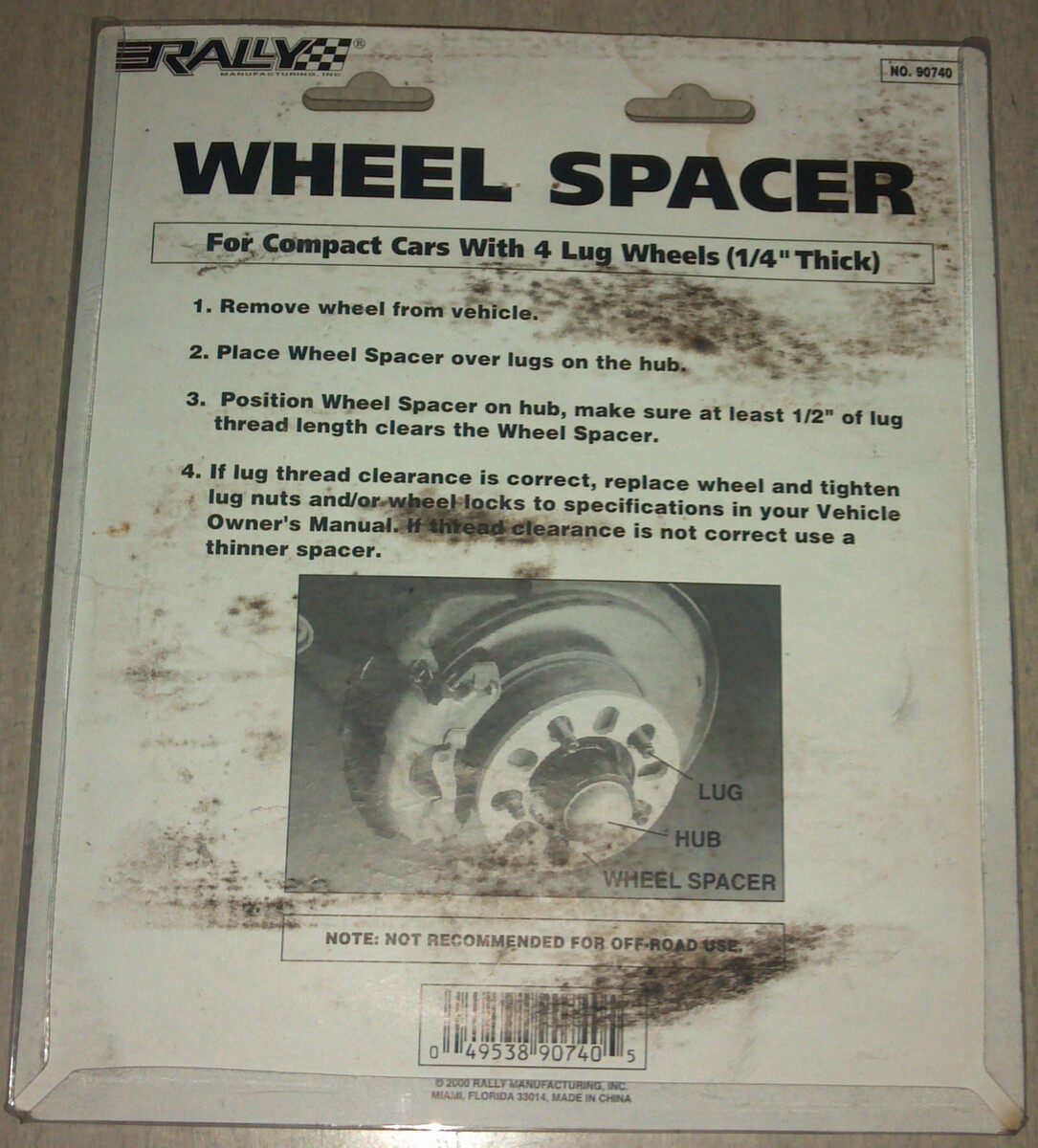 Wheel spacer is un-used old stock but packaging shows signs of age and storage.