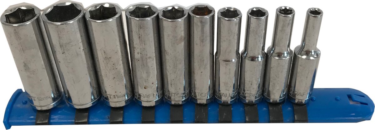 Category: Auto service toolsType: SocketsBrand: AutocraftModel number: naSize: Quarter InchColor: SilverPower source: Hand-heldNumber of pieces: 12Condition:Used