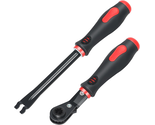 Nice Design brake adjustment tools: 5/16" double square slack wrench features a ratcheting mechanism, which allows quick direction changes without removing the wrench from slack adjuster; the fork end release tool for releasing the tensioner button; both provide much convenience when adjust brake system