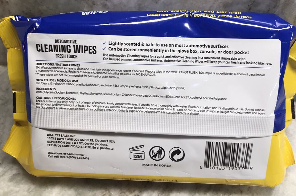 Automotive Cleaning 60Wipes/Toallitas De Limpieza Automotriz Multi-Purpose/FRESH. Inventory Location 771